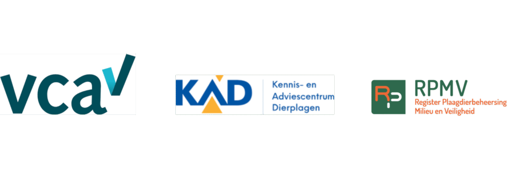 Wij zijn in het bezit van alle benodigde certificaten voor het voorkomen en bestrijden van allerlei vormen van ongedierte.